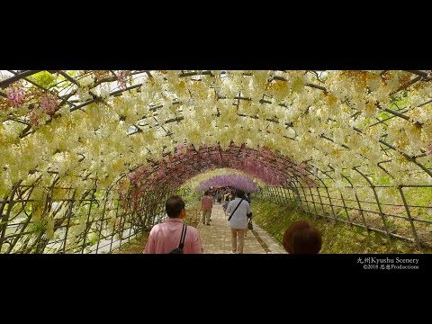Tidak jauh dari Tokyo, sebuah taman dongeng yang luar biasa dihiasi dengan jutaan bunga dalam berbagai warna pelangi. Bunga-bunga ini adalah bunga wisteria, yang umum ditemukan di Jepang, yang digantung pada bingkai karangan bunga yang dibuat khusus. Air terjun bunga yang menakjubkan mengalir dari atas, membentuk terowongan harum beraneka warna. Selain wisteria, ada banyak bunga lain yang berwarna cerah namun lebih familiar di taman ini.