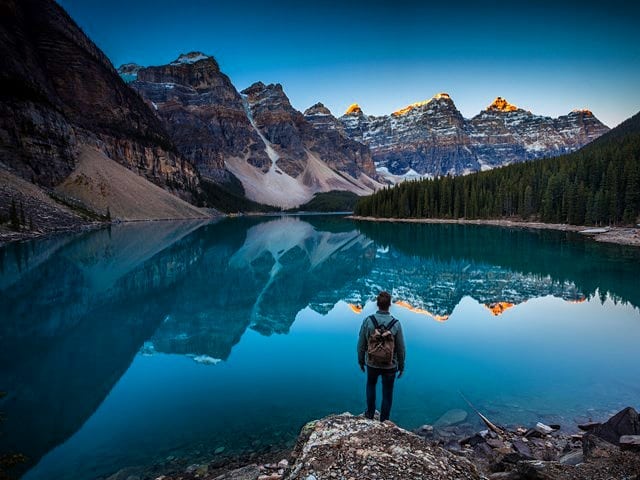 Bila berkunjung ke Kanada, kalian bisa mencoba untuk rekreasi di pinggir danau ini. Sembari menghabiskan waktu, kalian akan disuguhkan pemandangan dari pegunungan salju di taman nasional tersebut.
