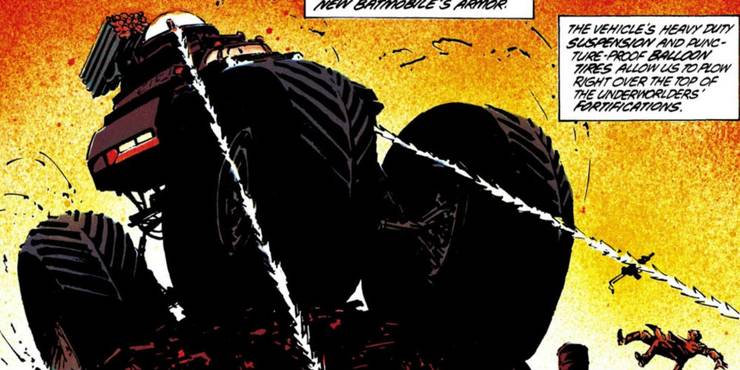 Desain Batmobile ini benar-benar sangat keluar dari konteksnya, tapi, memang sangat sesuai dengan sosok Batman yang sudah tua yang diperlihatkan dalam cerita ini. Juga dengan Batman yang memimpin pasukan bawah tanah di akhir ceritanya, memang rasanya cocok bagi Batman untuk mengendarai tank dibandingkan dengan mobil.